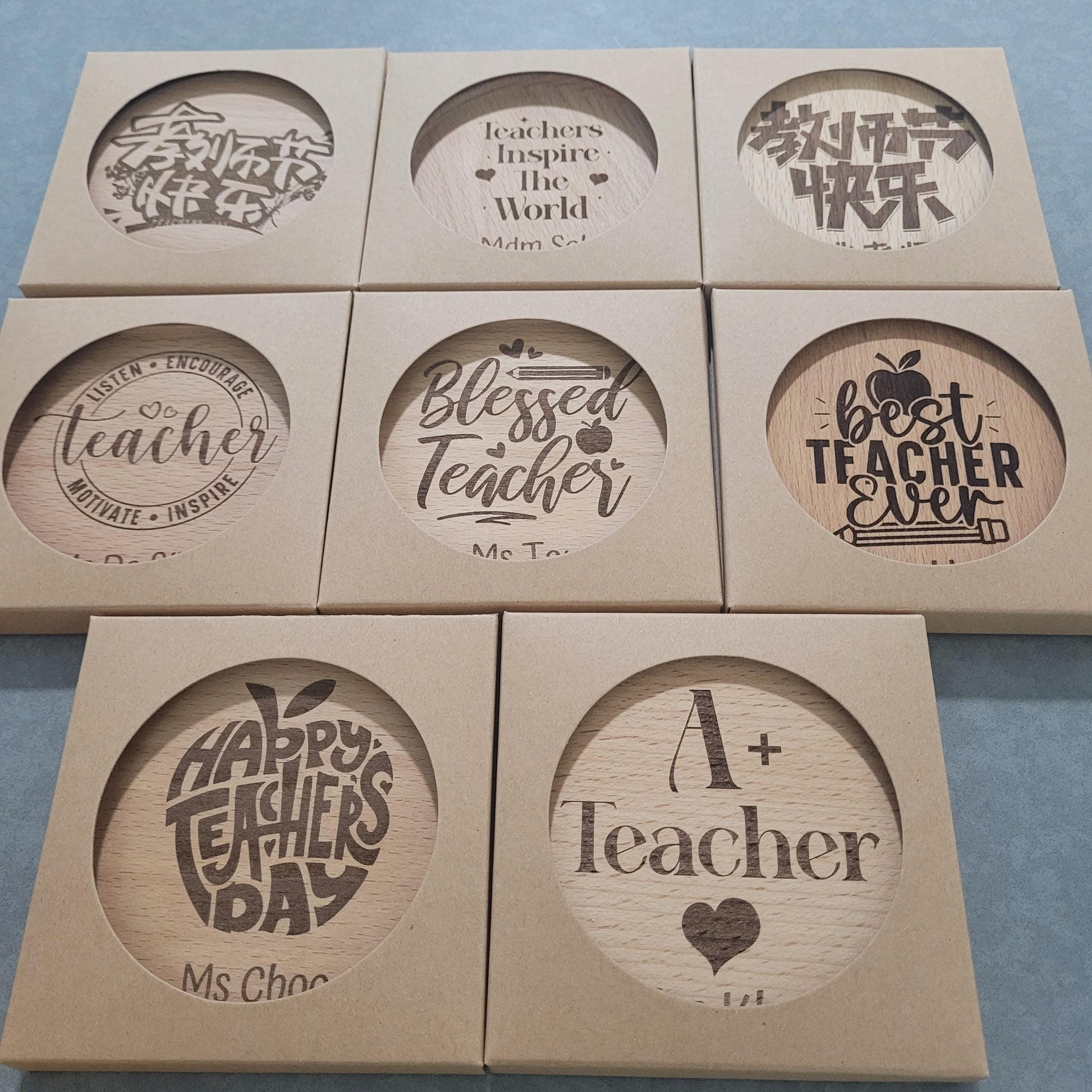 Coasters are made of natural wood. There are slight variations in wood tone and pattern.
